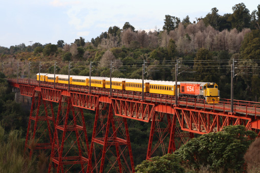 Enjoy complimentary refreshments as we pass through the South Waikato farmlands, with further stops at Te Awamutu, Otorohanga, and Te Kuiti. Cross the Waiteti Viaduct and navigate steep grades and rugged terrain to the Poro-O-Tarao Tunnel. Beyond Te Kuiti, we continue our journey through the King Country. First, we cross over the Waiteti viaduct, built in 1889 and measuring 127m long and 36m high - the very first of many viaducts on the "Main Trunk Line" to be opened. We continue to climb steep grades through rugged farm lands and forests whilst weaving our way around rock faces until we reach the Poro-O-Tarao tunnel, the longest tunnel we travel through today at over 1.2km long.
