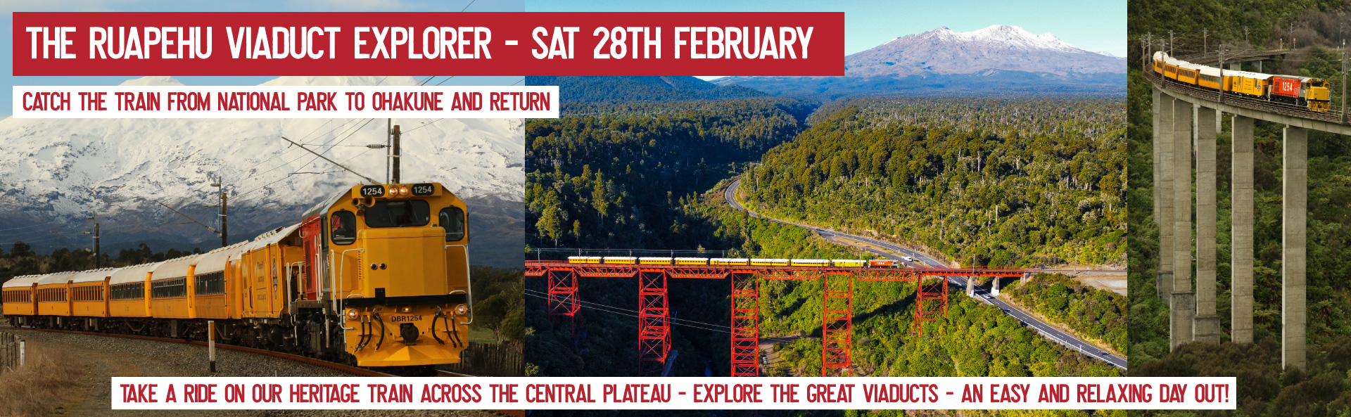 Hauled by our heritage diesel locomotive DC 4818 - our train will make its way across the central plateau, down the Main Trunk Line to Ohakune, passing through some breathtaking scenery and across the impressive viaducts.