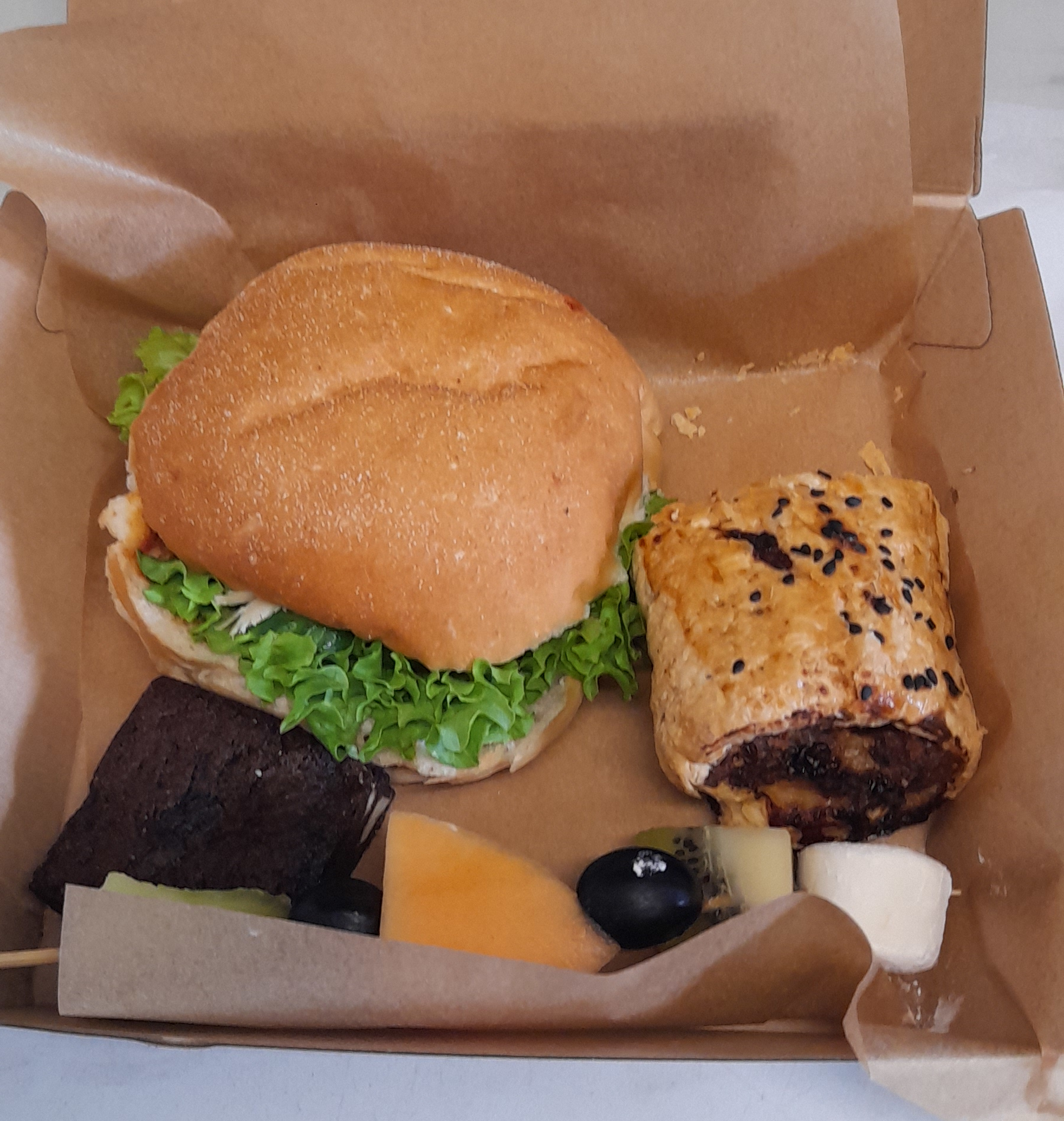 Pre-order a tasty lunch pack with a selection of sweet and savoury items, including a drink.