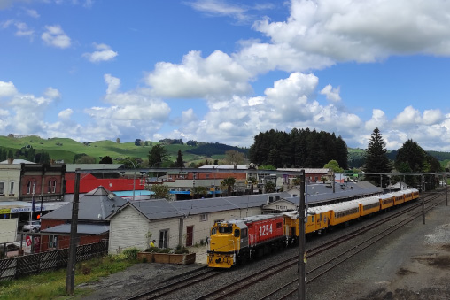 Boarding at Hamilton's Frankton Station, the journey south sees us pass through a quick succession of rural towns. To our right will be the majestic Pirongia Mountain as we traverse the rich Waikato farming pasture. South of Te Awamutu we pass over the Puniu River, entering the King Country. After we pass through Otorohanga, you may catch a glimpse of the Rangitoto Ranges to the left. From here it is only a short gallop into Te Kuiti.